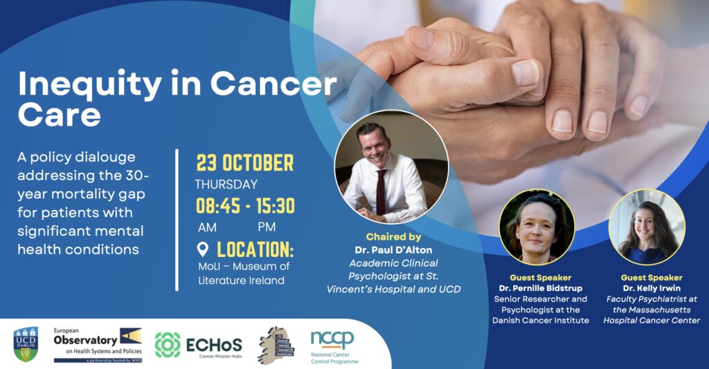 We are pleased to invite you to attend the “Policy Dialogue on Inequity in Cancer Care” on Thursday, 23rd October 2025, at the Museum of Literature Ireland (MoLI) in Dublin.